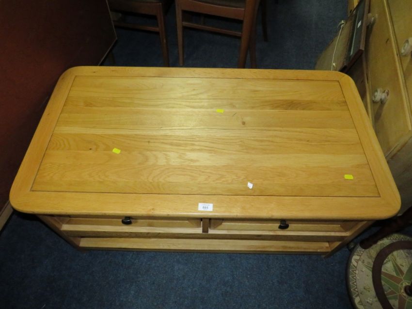 A MODERN OAK MEDIA CABINET WITH DRAWERS - W 110 cm