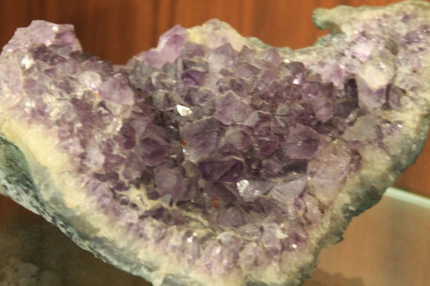 A QUANTITY OF AMETHYST STYLE GEOLOGICAL ROCK EXAMPLE AND TWO ROCK EXAMPLE DISPLAYS