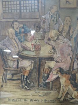 THREE FRAMED AND GLAZED COMICAL WATERCOLOURS BY PERCY DETHERIDGE PAINTED PRIOR TO WWI - PERCY KILLED IN WAR AGED 21