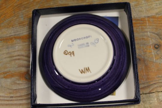 A MOORCROFT PIN DISH COMPLETE WITH BOX