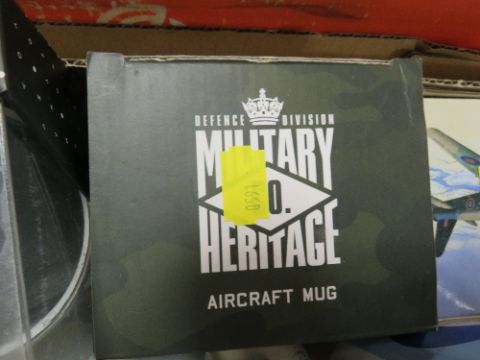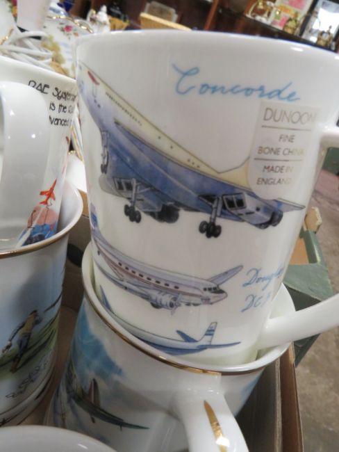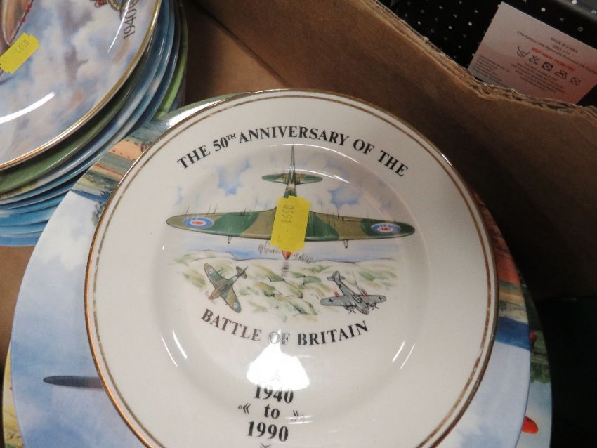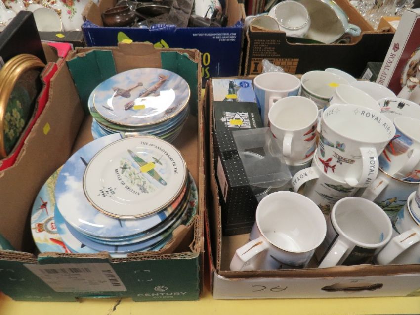 TWO TRAYS OF ASSORTED RAF THEMED CERAMICS TO INCLUDE MUGS, COLLECTORS PLATES ETC