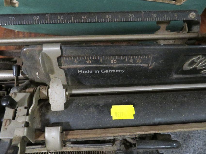 A VINTAGE JONES SEWING MACHINE TOGETHER WITH A VINTAGE OLYMPIA BUROMASCHINENWERKE A.G. ERFURT MOD 8 TYPEWRITER