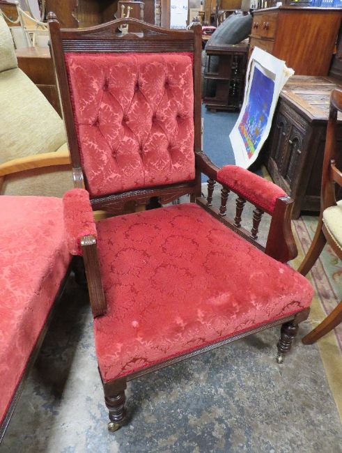 EDWARDIAN MAHOGANY CHAISE LONGUE ALONG WITH TWO GENTLEMEN'S ARMCHAIRS