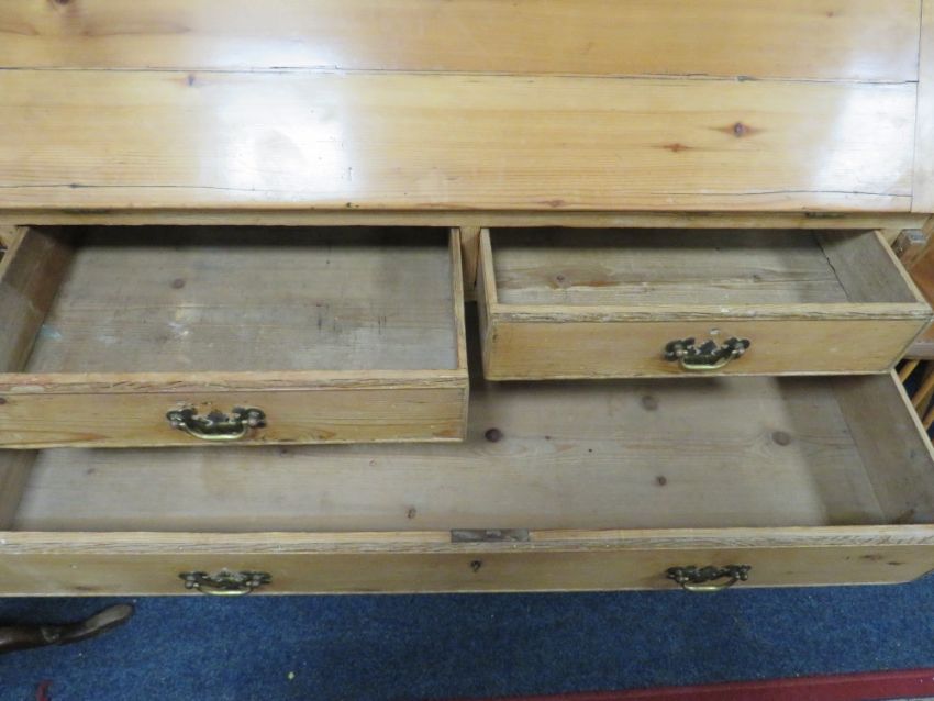 AN ANTIQUE PINE COUNTRYMADE BUREAU - W 106.5 cm