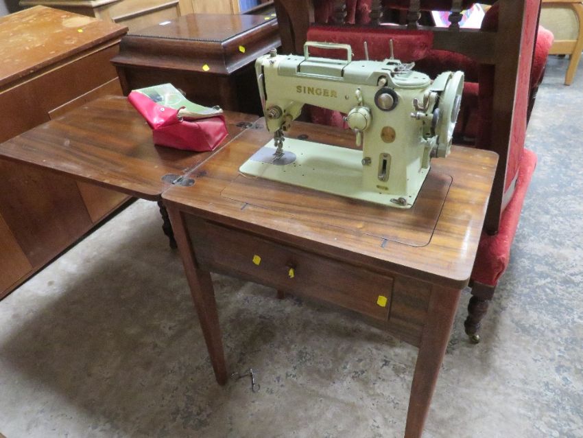 A TABLE CASED SINGER ELECTRIC SEWING MACHINE