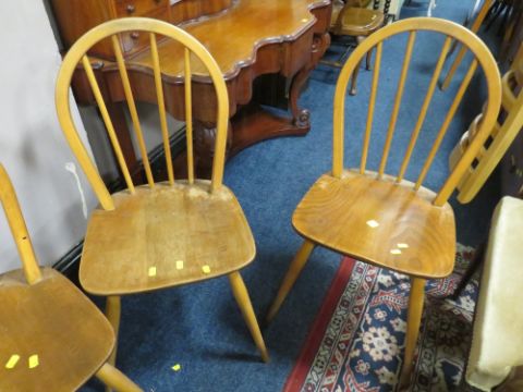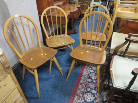 A SET OF FOUR ERCOL STYLE HOOP BACK CHAIRS