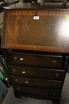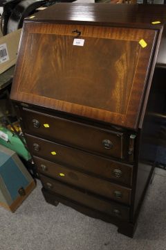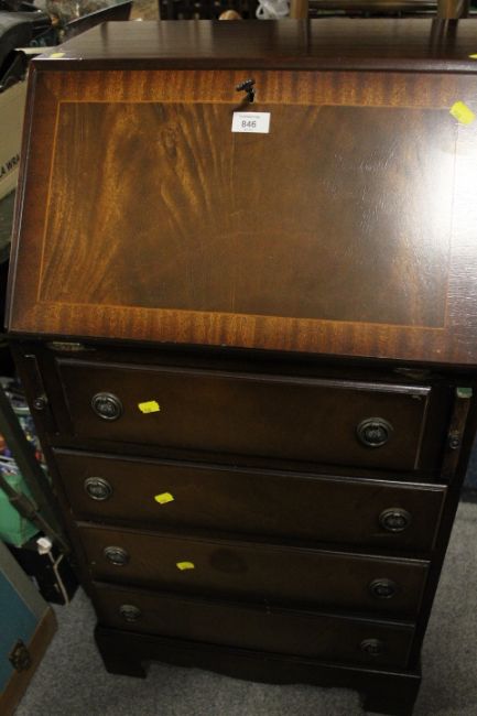 A SMALL REPRODUCTION MAHOGANY BUREAU - W 52 cm