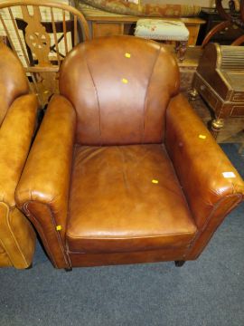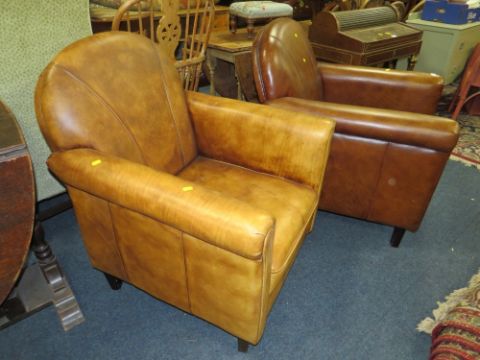 A PAIR OF MODERN TAN LEATHER CLUB STYLE ARMCHAIRS - NOTE: COLOURS ARE DIFFERENT
