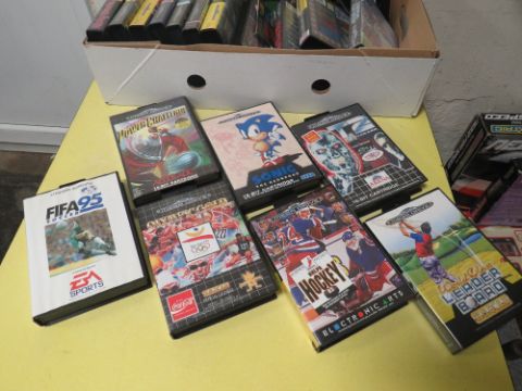 A TRAY OF VINTAGE SEGA MEGA DRIVE GAMES TO INCLUDE EAS SPORTS FIFA INTERNATIONAL SOCCER , OLYMPIC GOLD ETC