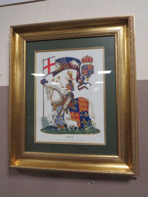 A GILT FRAMED AND GLAZED PRINT OF KING RICHARD III, IMAGES OF LONDON ETC (5 )