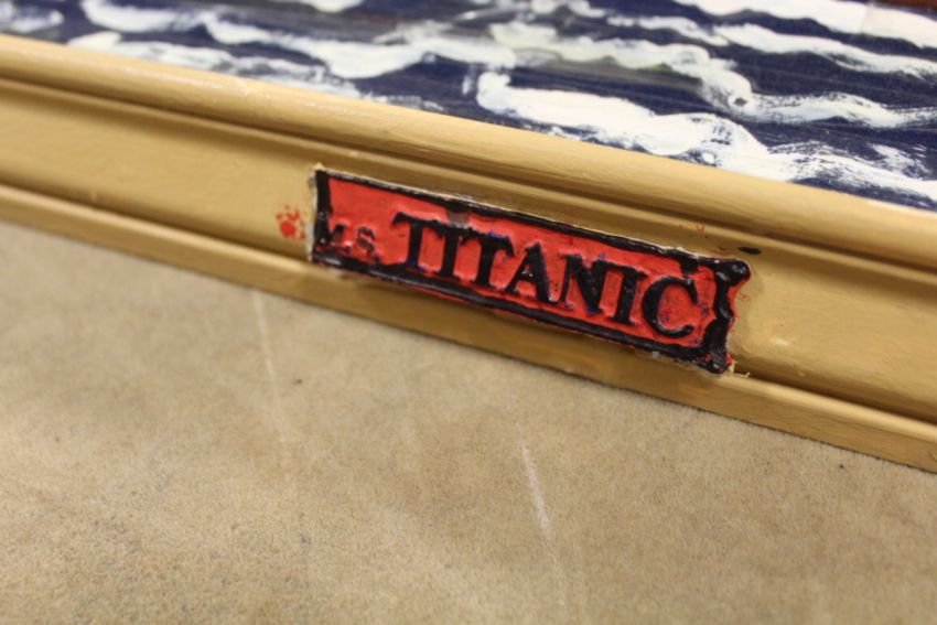 A MODEL SHIP OF THE TITANIC ON PLINTH, OVERALL L 77 cm, W 21 cm