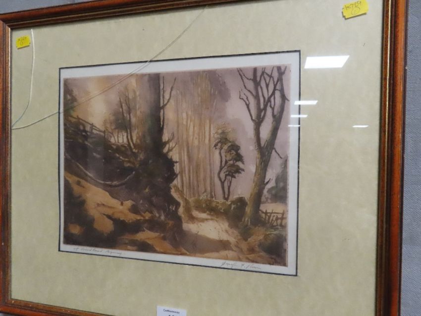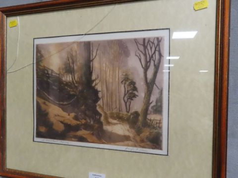 JOSEPH F PIMM - A FRAMED AND GLAZED SIGNED AQUATINT ENTITLED A WOODLAND BYWAY SIGNED LOWER RIGHT