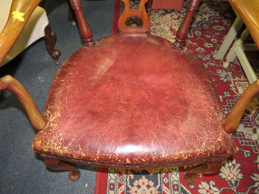 A 19TH CENTURY MAHOGANY OPEN ARMCHAIR