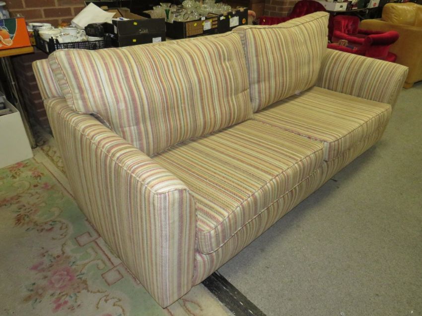 A LARGE MODERN STRIPED UPHOLSTERED SETTEE