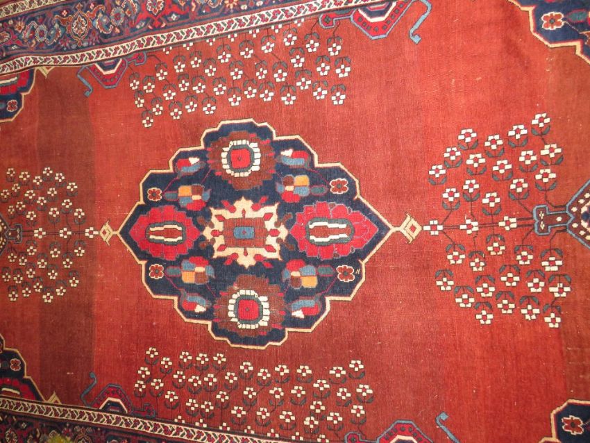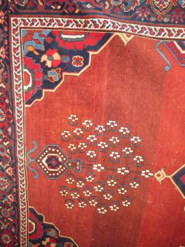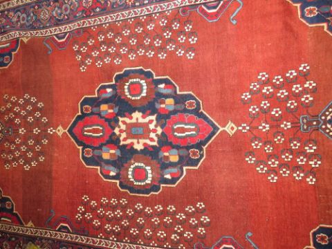 AN ANTIQUE WOOLLEN RUG 242 x 152 cm