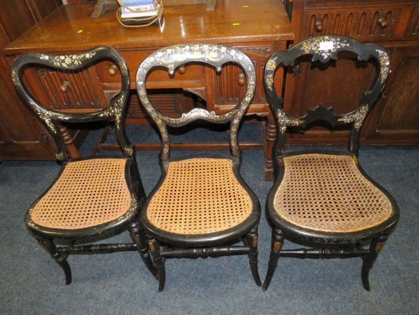 THREE VICTORIAN PAPIER MACHE BEDROOM CHAIRS