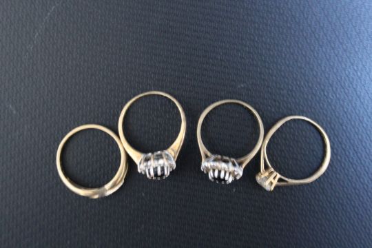 FOUR ASSORTED 9 CARAT GOLD DRESS RINGS, set with CZ's etc., approx combined weight 7.4g