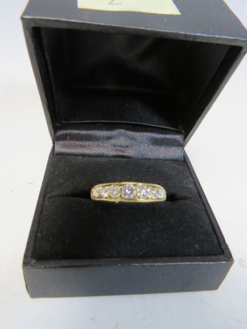 A LADIES 18CT GOLD SEVEN STONE DIAMOND RING, approximately 1 carat in total