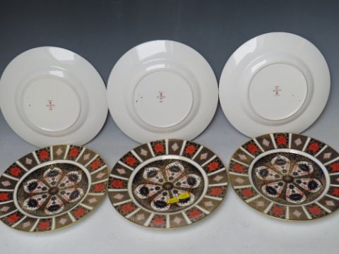 SIX ROYAL CROWN DERBY IMARI PATTERN PLATES, pattern no. 1128, Dia 17 cm