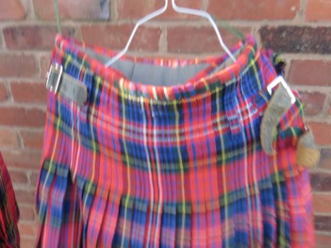 A TARTAN MILITARY KILT TOGETHER WITH A TARTAN PIPERS PLAID