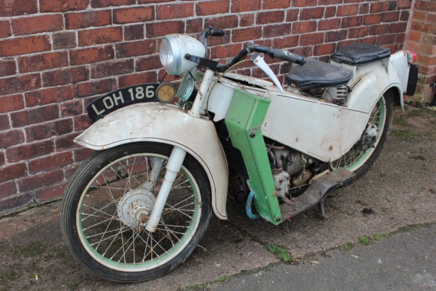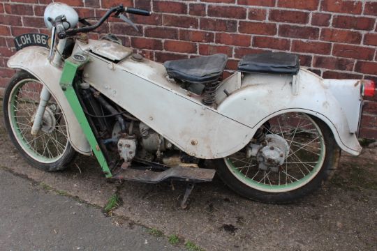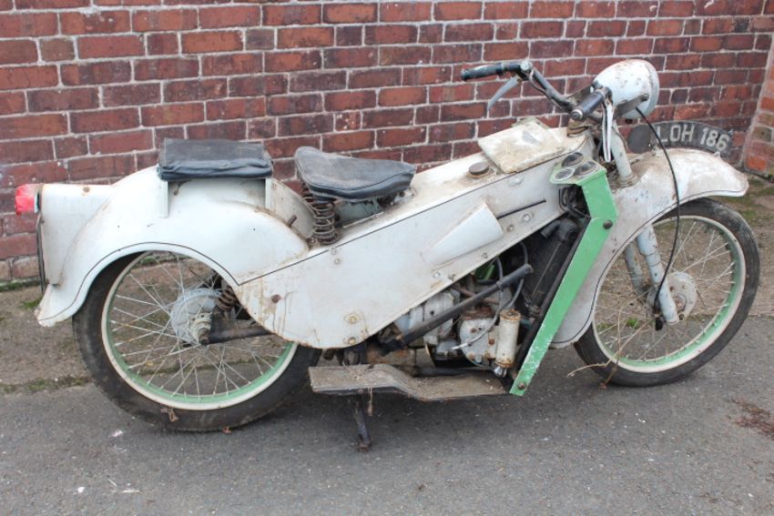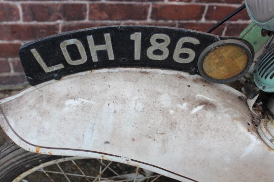 A VELOCETTE MK1 MOTORCYCLE, having pressed steel frame, hand change gearbox and horizontally opposed twin cylinder engine, mileage 00428, Reg: 'LDH 186', with early vehicle registration document