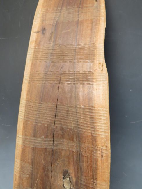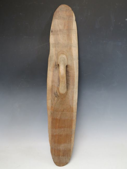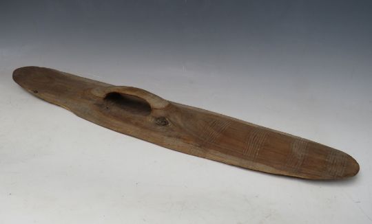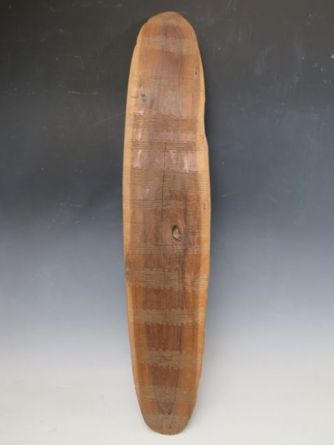 A VINTAGE AUSTRALIAN ABORIGINAL PARRYING SHIELD, W 15 cm, L 75 cm