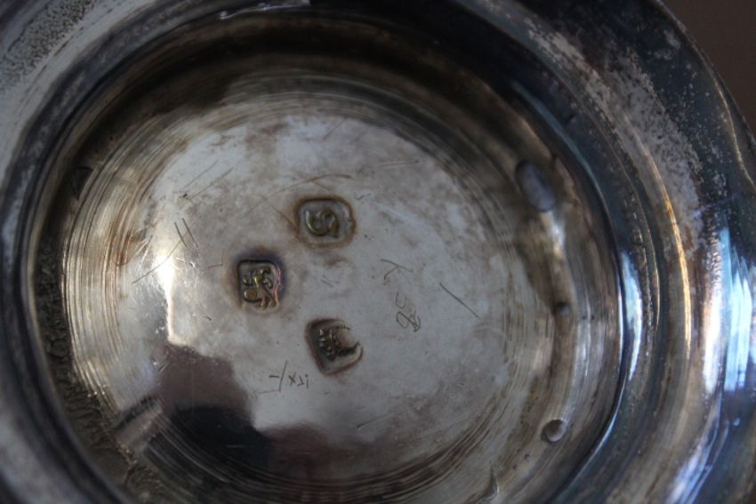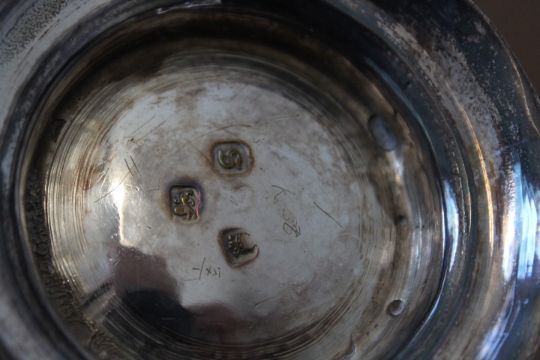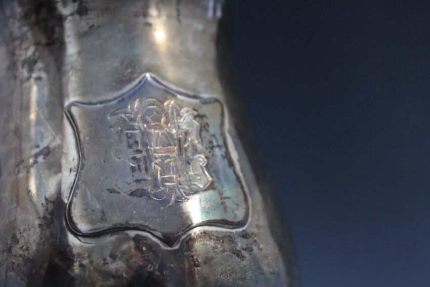 A HALLMARKED SILVER TANKARD - LONDON 1773, with later applied shield cartouche having engraved initials, approx weight 310g, H 12 cm