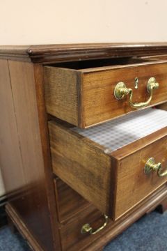 A SMALL GEORGIAN MAHOGANY CHEST OF FIVE DRAWERS, raised on bracket feet, H 77 cm, W 64 cm, D 42 cm