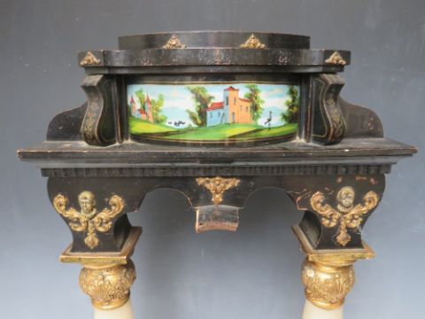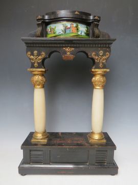 A 19TH CENTURY EUROPEAN STYLE DECORATIVE ARCH PORTICO CLOCK CASE, H 58 cm, base W 36 cm