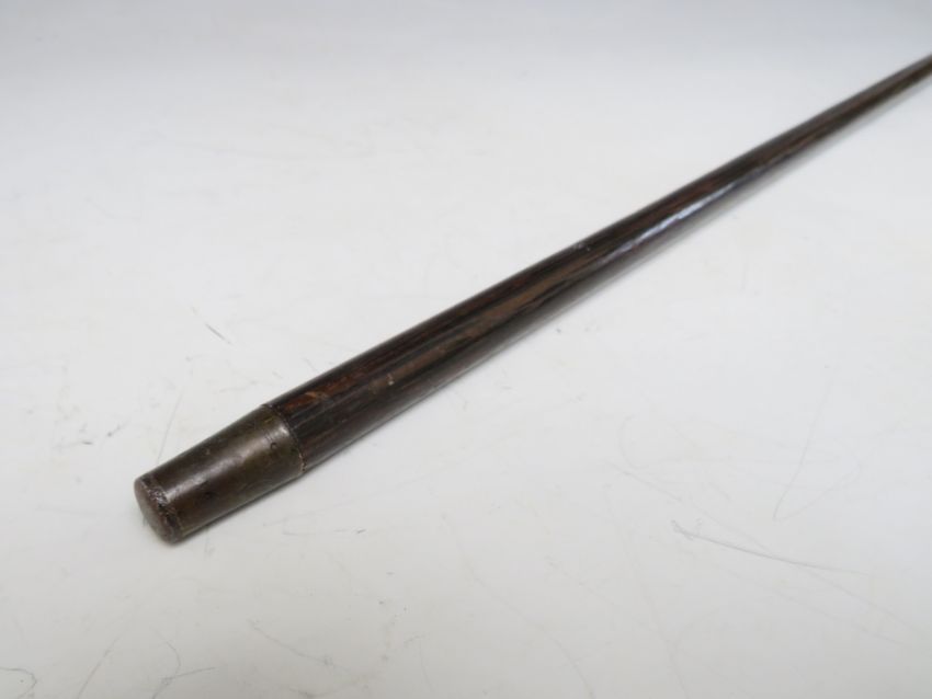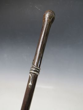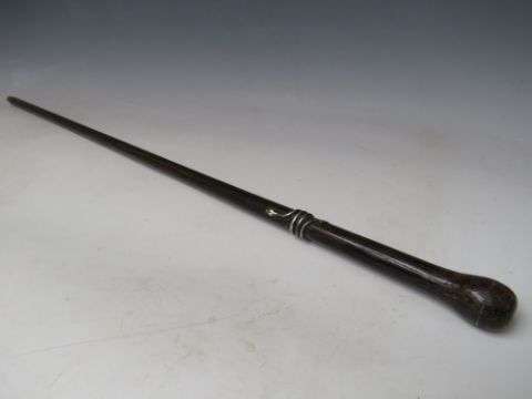 A 19TH CENTURY PALMWOOD WALKING STICK, with applied white metal snake, overall L 89 cm