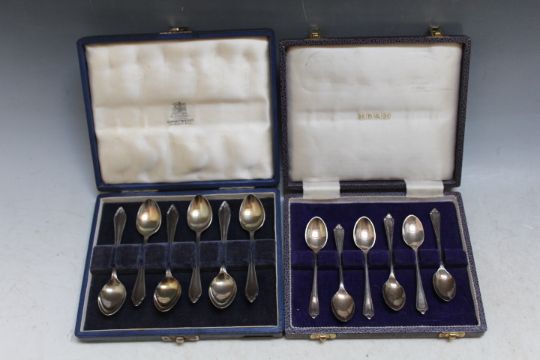 TWO CASED SETS OF MODERN HALLMARKED SILVER COFFEE SPOONS, approx combined weight 120g