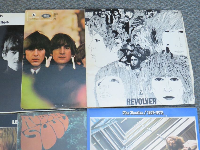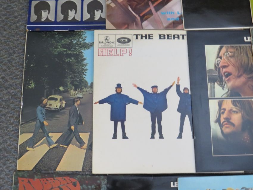 FOURTEEN BEATLES RECORDS TO INCLUDE HARD DAYS NIGHT MONO PMC 1230, Please Please Me Stereo, PCS 3042, With The Beatles Mono PMC 1206, Beatles For Sale Mono PMC 1204, Revolver Mono PMC 7009, Sgt Peppers PMC 7207, Abbey Road PCS 7088, Help PCS 3071, Let It Be PCS 7096, Rubber Soul PCS 3075, Rubber Soul PMC 1267, Let It Be PCS 7096, REd and Blue double albums, together with a Beatles Sgt Peppers 12" picture disc