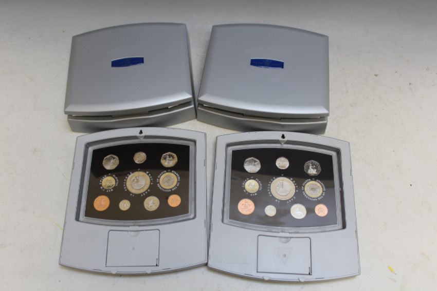 TWO ROYAL MINT YEAR 2000 EXECUTIVE PROOF COIN COLLECTION SETS, together with two similar sets in display stands (4)