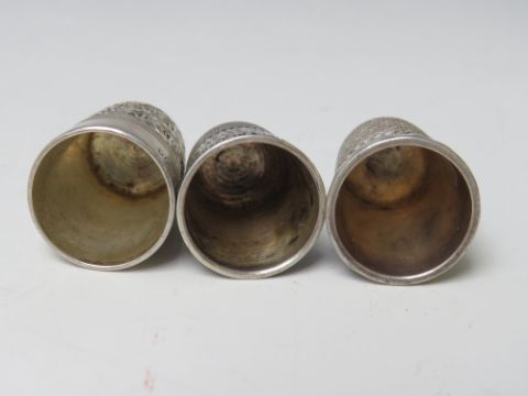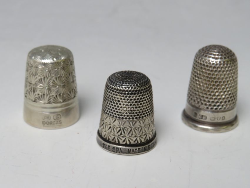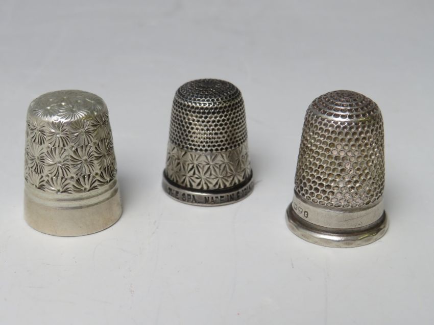 A CHARLES HORNER WHITE METAL THIMBLE, together with a Charles Horner hallmarked silver thimble and a hallmarked sterling silver thimble (3)