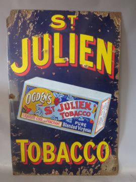 AN ORIGINAL 'ST JULIEN TOBACCO' ENAMEL SIGN, 91 x 60.5 cm