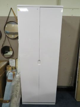 A MODERN WHITE GLOSS TWO DOOR WARDROBE 198 X 74 CM