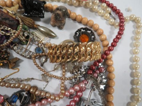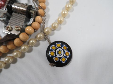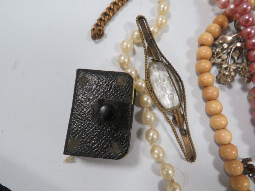 A BOX OF VINTAGE COSTUME JEWELLERY ETC