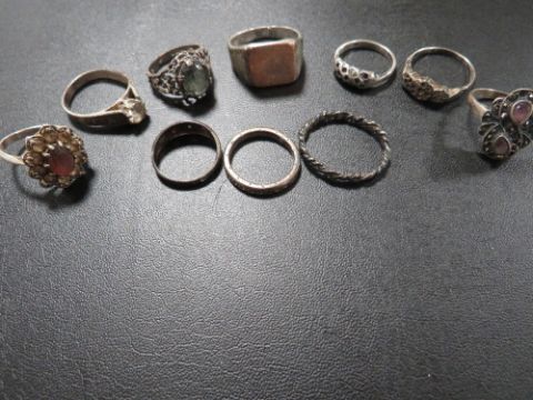 TEN ASSORTED SILVER & WHITE METAL RINGS A/F