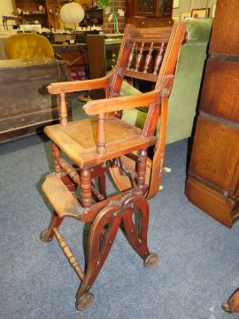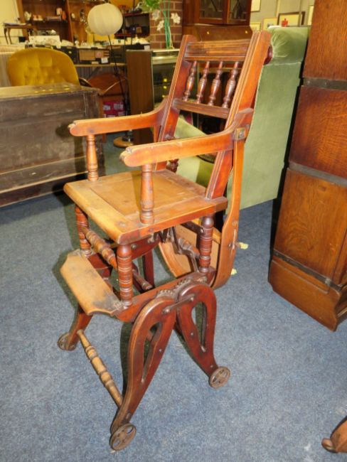 AN EDWARDIAN MAHOGANY METAMORPHIC CHILDS CHAIR