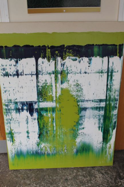 A LARGE ABSTRACT UNFRAMED OIL ON CANVAS - 122 x 92 cm