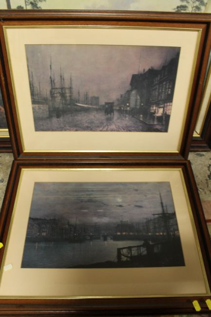 A LARGE FRAMED WOODLAND PRINT & TWO MOONLIT PRINTS (3)