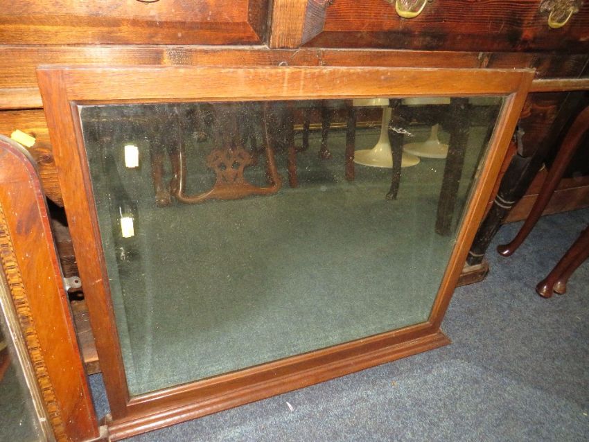 A VINTAGE OAK MIRRORED HAT STAND AND TWO MIRRORS AND DUMB WAITER (4)