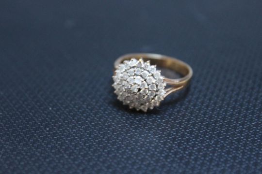 A HALLMARKED 9 CARAT GOLD DIAMOND CLUSTER RING, set with an estimated half carat of diamonds, approx weight 3.1g, ring size Q 1/2