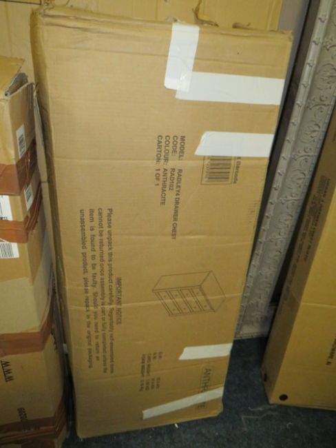 A QUANTITY OF BOXED AND UNCHECKED FLAT PACKED FURNITURE INCLUDING CHESTS