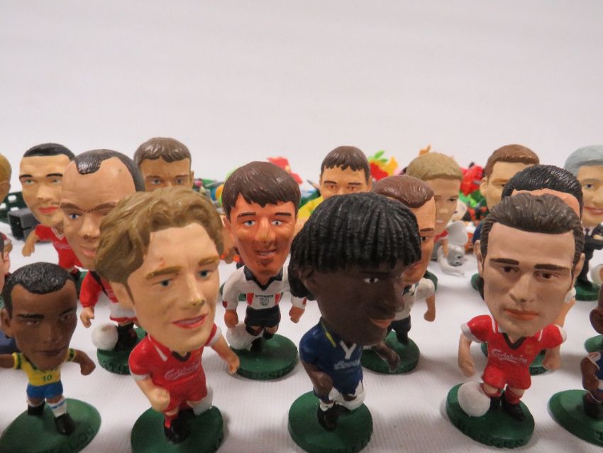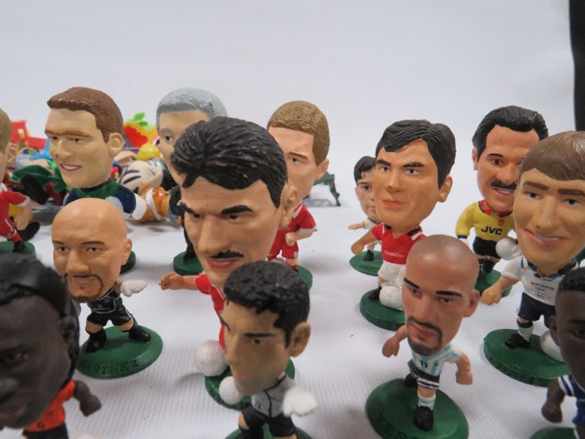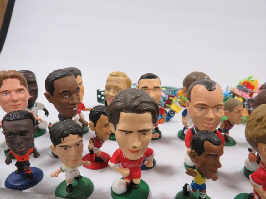 A TRAY OF COLLECTABLE FOOTBALL FIGURES ETC