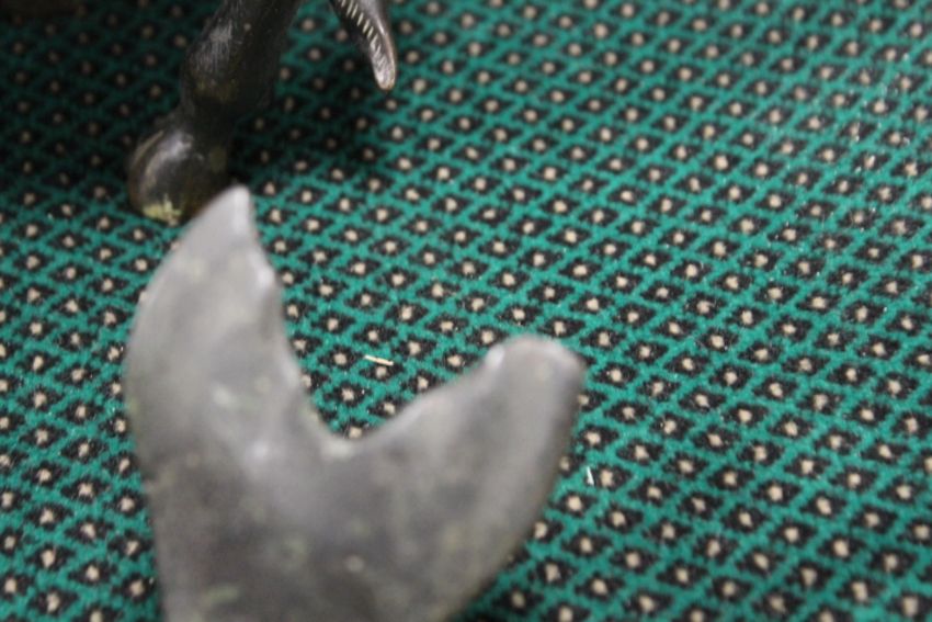 Condition Report:There are no hands to the Buddha on the fish, Possible a small loss to the end of the tail? The ox appears to be in order with no obvious losses / damage
