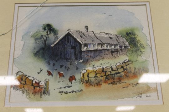 A PEN AND WASH PICTURE OF A FARMYARD SCENE BY GEORGE DAWSON INITIAL LOWER RIGHT