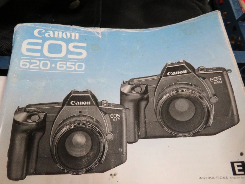 A CANON EOS650 35mm CAMERA WITH INSTRUCTION BOOK, CANON 35 - 70mm ZOOM LENS, COBRA 400AF-CA FLASH GUN AND CAMERA CARRY BAG