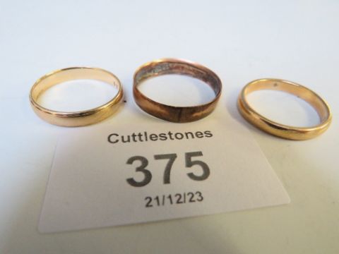 THREE 9CT GOLD WEDDING BANDS, APPROX W 5.95 G