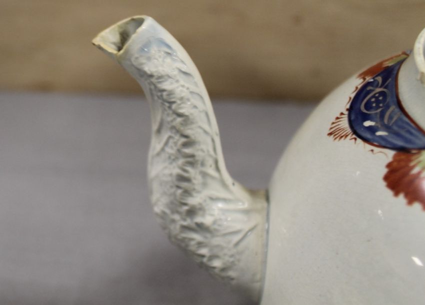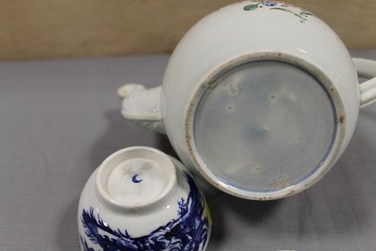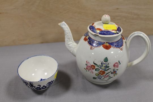 A 19TH CENTURY PEARLWARE TEAPOT, together with a Royal Worcester blue and white tea bowl, crescent mark to base (2) S/D